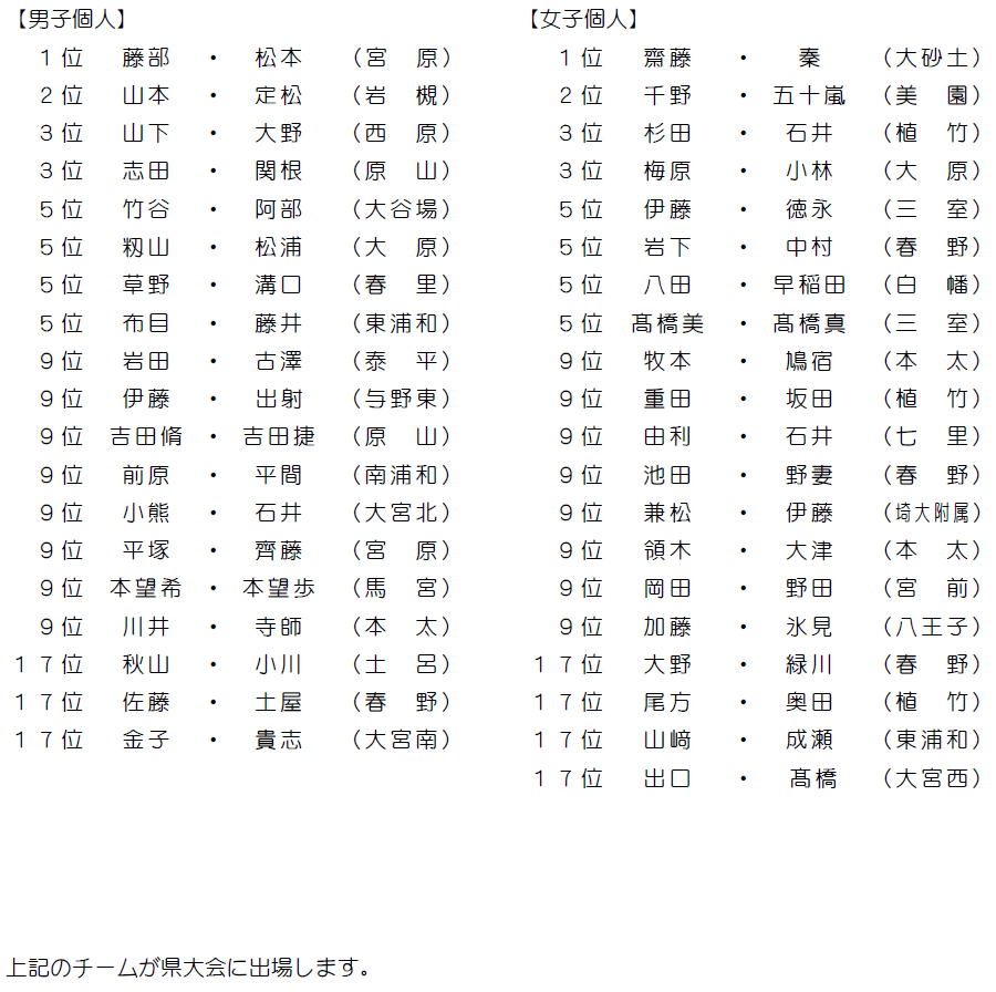 県大会出場者およびチーム